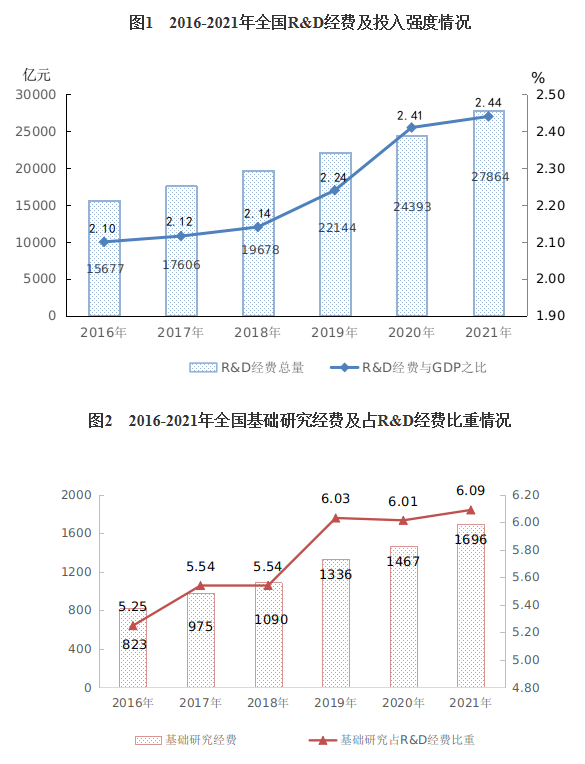 国家统计局今日公布数据显示,初步测算,2021年我国全社会研究与试验发展(R&D)经费投入为27864亿元,比上年增长14.2%,扣除价格因素,实际增长9.4%;R&D经费与国内生产总值(GDP)之比达到2.44%,比上年提高0.03个百分点。