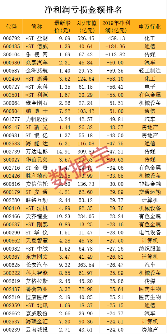 业绩巨亏公司名单出炉