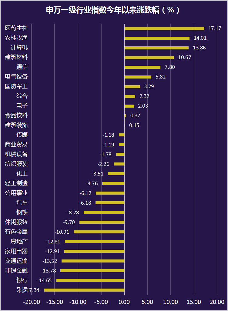截至2020年4月21日收盘,上证综指今年以来下跌7.31%,沪深300指数下跌7.04%,深成指微涨0.73%。而医药生物板块同期上涨17.17%,在28个申万一级行业中一马当先,还小幅领先涨幅居于第二的农林渔牧。