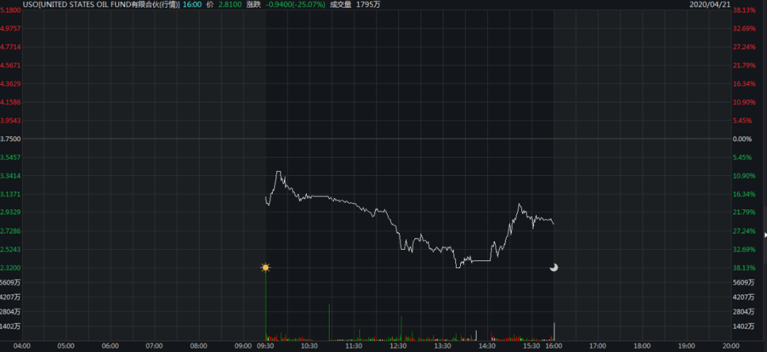 而在本周二欧股交易时期,信诚商品重仓的这两只油气基金均遭遇重挫。USO收跌25.07%,收创历史新低,盘中最大跌幅接近40%,两度暂停交易。BNO收盘大跌近20%,盘中一度跌逾24%。