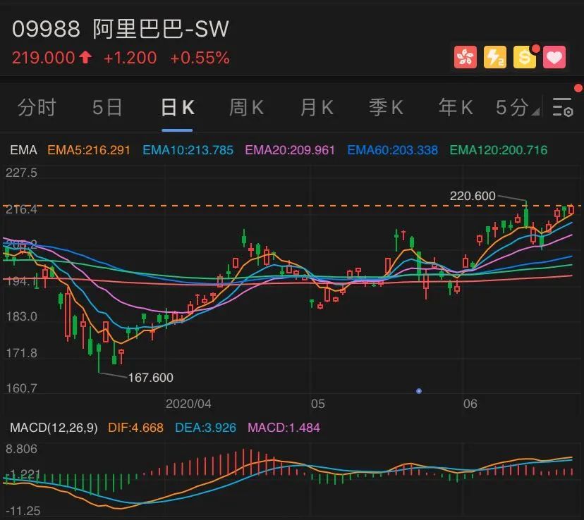 今年4月初以来,阿里巴巴股价上涨19.4%左右。
