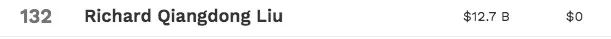 目前,在福布斯实时富豪排行榜上,刘强东排名全球第132名,身家为127亿美金,约合人民币898亿,不及黄峥的三分之一。