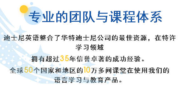 资料显示,迪士尼英语(英语:Disney English)是华特迪士尼(Walt Disney)公司直营的培训品牌,也是迪士尼国际出版社迪士尼学习部门的子公司。提供含有迪士尼角色的英语学习课程给中国大陆2至12岁的青少年,课程由中国、欧洲和美国的专业人员教授。该课程采用“迪士尼沉浸式故事讲述方法”,创造一个融入迪士尼角色的沉浸式环境,让学习更有趣。