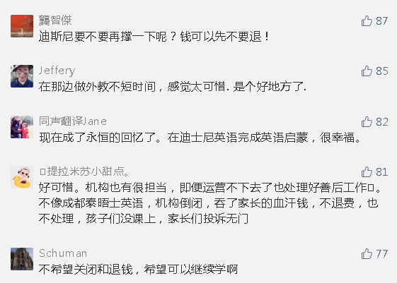有网友表示, 迪士尼英语“哪怕是收尾,都顾全了学员和员工。这样的机构是值得尊敬的”。