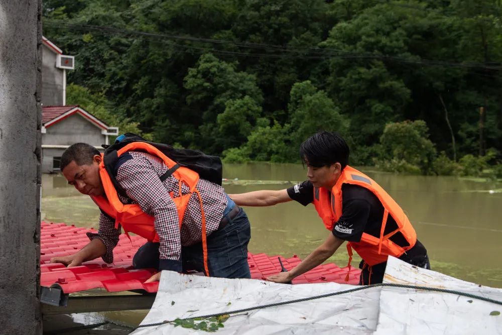 随着江西多地出现内涝,消防官兵也紧急出动,持续开展救援工作,将被困群众转移到安全地区。
