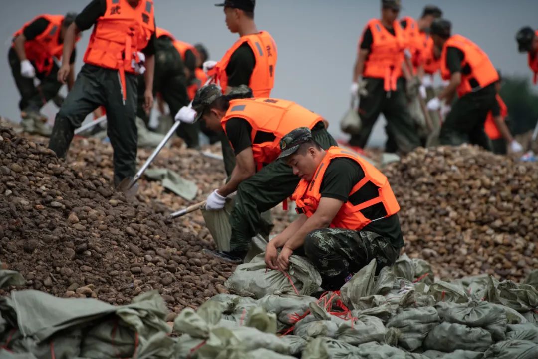 目前,官兵正根据当地防汛部门部署,担负姚沟镇江心洲和泥汊镇江堤子坝的构筑任务,确保洪峰过境时,最大程度降低对人民群众生命财产和安全的威胁。据长江水利委员会消息,预计12日至13日长江干流附近有中到大雨;14日至17日,乌江、三峡区间、洞庭湖水系西北部、长江中下游干流附近有大到暴雨。受持续强降雨影响,长江中下游干流监利以下江段、洞庭湖七里山站、鄱阳湖湖口站水位持续上涨。预计未来几天,城陵矶附近江段仍有0.2米左右的涨幅,莲花塘站水位将接近保证水位;汉口至大通江段仍有1米左右的涨幅,九江至湖口江段将超过保证水位。长江委水文局2020年7月11日12时继续发布长江中下游干流九江至湖口江段、鄱阳湖湖区洪水红色预警,继续发布长江中下游干流城陵矶至汉口江段、洞庭湖湖区、大通以下江段、水阳江洪水橙色预警。为进一步减轻中下游防洪压力,长江水利委员会决定,减小三峡水库出库流量至19000立方米每秒,减小丹江口水库下泄流量至500立方米每秒,后续将根据水雨情变化,滚动会商,及时优化调度方案。