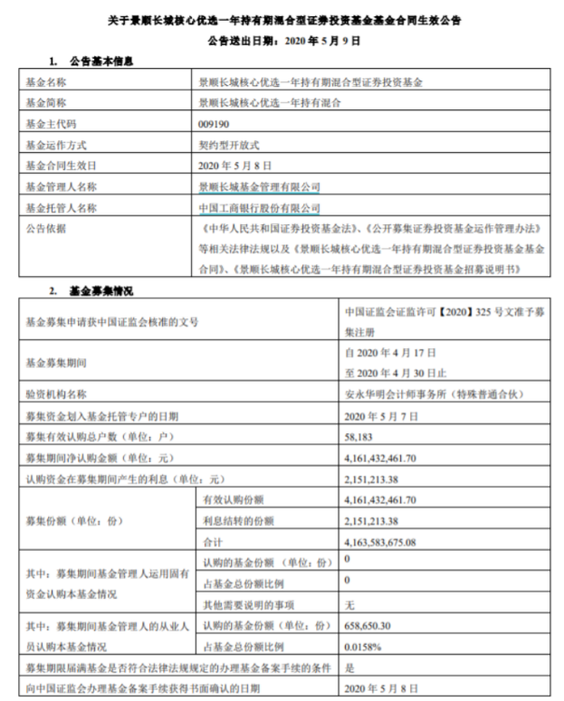 实际上,5月份基金发行较为平淡,只有一些知名基金经理管理基金受到市场欢迎。比如景顺长城核心优选一年持有混合基金在5月9日宣布成立,首募规模41.61亿元。而该基金的募集期间为4月17日至4月30日,募集期间共获得有效认购户5.82万户,净认购金额和有效认购份额分别为41.61亿元和41.61亿份。该基金由绩优基金经理余广管理。截至目前,余广管理的基金规模超过了50亿元,任职期间最佳回报率超过了300%。