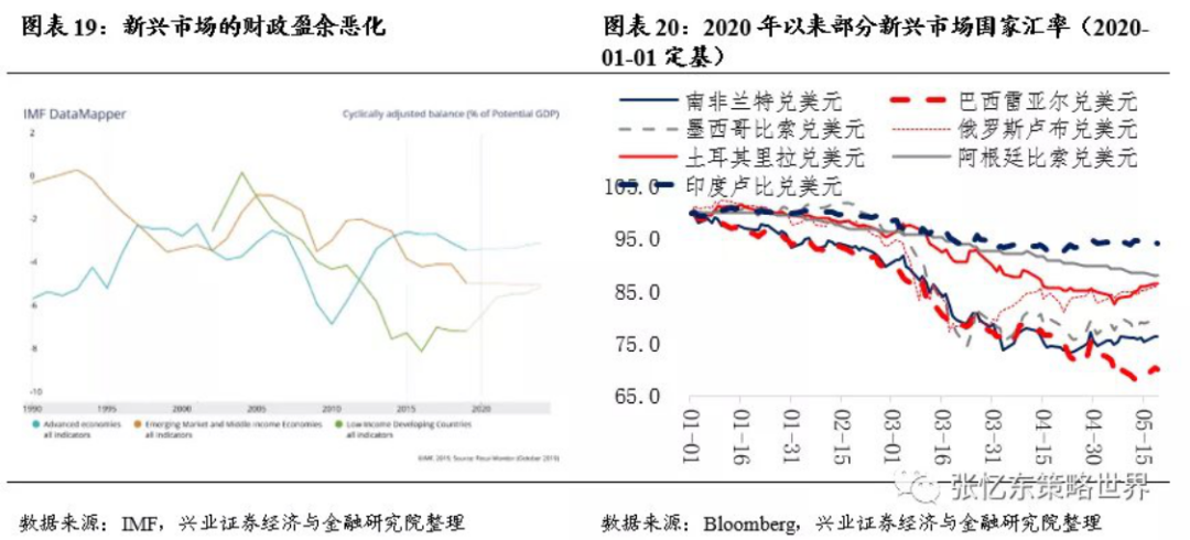 兴业证券张忆东在最新的报告中出,新兴市场的债务危机已经在路上,这是全球股市灰犀牛风险。目前,巴西、印度等新兴市场国家疫情确诊病例仍在增加,且受制于医疗资源不足,疫情真实情况或更加严重。全球经济衰退之下,依赖出口的新兴经济体经常账户受冲击,多数新兴市场国家汇率出现大幅贬值,其国内通胀上升,央行紧缩以平抑通胀,需求进一步受打击,主要新兴市场国家CDS利差仍处于高位。张忆东表示,内忧外患之下,要警惕新兴市场债务危机进一步演绎,可能带来全球股市的阶段性冲击。新兴市场爆雷,不能指望中国股市成为避风港,反而应当警惕“抽水”风险。目前情况 ,可以参考上世纪东南亚危机时,外资回撤发达市场的历史经验。