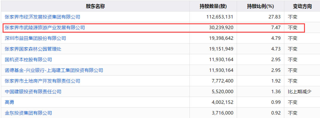 根据张家界一季报显示,张家界市武陵源旅游产业发展有限公司是张家界第二大股东,持股7.47%。