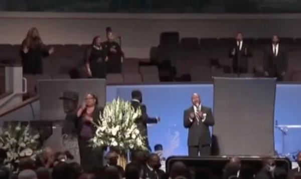 乔治·弗洛伊德葬礼正式开始前,合唱团演唱《鲜血永不失去力量》(The Blood Will Never Lose Its Power),与会者站起来鼓掌。