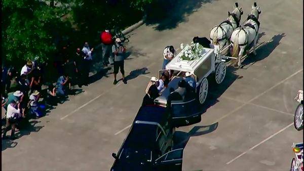 当地时间6月9日下午17时许,载有灵柩的马车到达休斯敦皮兰郊区的纪念花园公墓,弗洛伊德(George Floyd)将与他的母亲拉塞尼亚·弗洛伊德(Larcenia Floyd)葬在一起。