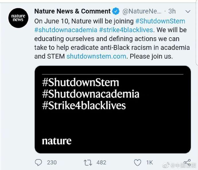 同日,美国高校学术界和科技界联合向同行发起倡议,呼吁科学家和学者在本周三一起参与大罢工,用中止学术、中止科研等方式支持 “黑人的命也是命”的游行示威。组织者Brittany Kamai是一名夏威夷土著,目前受聘于加州大学圣塔克鲁兹分校和加州理工从事实验物理学研究。Kamai说,该罢工是为了反抗学术界、科技界长期对黑人团体的不公。目前,上百名科学家,《自然》科学杂志表示将参加该罢工。