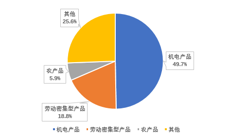 图4 2018年中国对东盟出口产品在东盟出口总额中占比情况