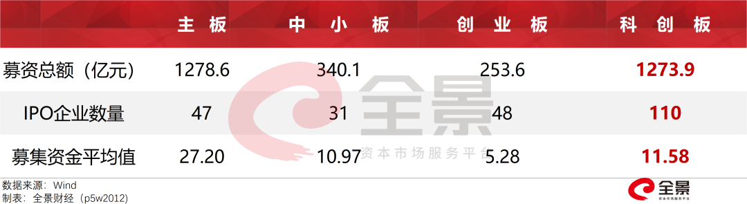 在摆脱净利润限制后,科创板的IPO融资能力。截止6月12日,已上市的110家企业的总融资金额超1273.9亿元,明显超过创业板、中小板同期的IPO募资总额,几乎逼近上交所主板的融资金额。