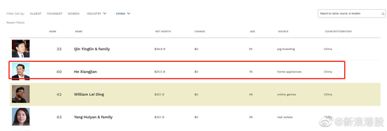 根据福布斯实时数据,何享健个人身家为255亿美元,折合1806亿元人民币,为中国第6大富豪,超过了丁磊和杨惠妍。
