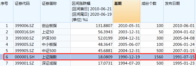上证综合指数发布于1991年,基期为1990年12月19日,至今快30年了。从最近10年的表现来看,上证指数的涨幅仅为18.08%,远远落后于沪深300指数、上证50指数的52.02%、56.39%,更是大幅落后于创业板指数的131.88%;仅略高于深证成指的17.07%。