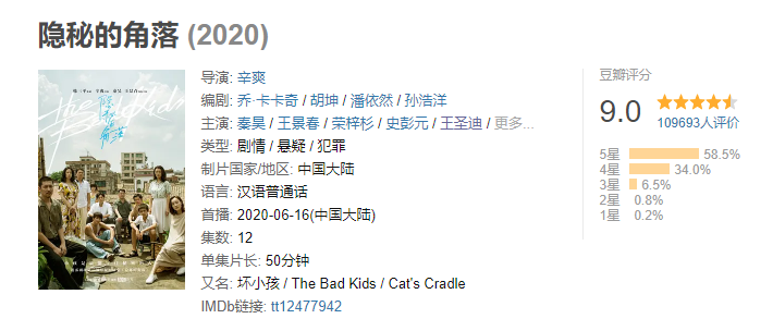 图说:《隐秘的角落》豆瓣评分9.0 网络图