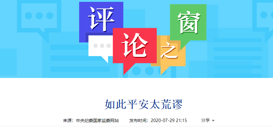 7月29日,中央纪委国家监委网站发布《评论 | 如此平安太荒谬》一文,文章提到,《平安经》这本奇书让群众强烈关注和不满,有几个匪夷所思的问题需要给出答案。