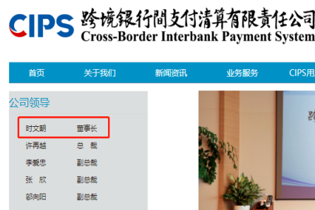 同时,跨境清算公司官网公司领导栏显示,时文朝已经出任董事长一职;而在此之前,董事长是励跃,搭档总裁许再越。励跃曾任中国人民银行支付结算司司长,在2018年8月由央行副行长范一飞提名担任。
