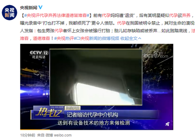 此前,央视记者曾暗访代孕机构:为保证胚胎植入成功率,代孕者要不断打针吃药;“包生男孩”代孕者怀女孩会被强行打胎;胎儿如存缺陷,会发生弃婴……代孕机构称“只管付钱抱孩子”,却只字不提我国禁止以任何形式实施代孕,双方签订的协议不被法律承认