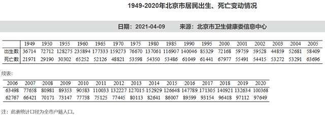 人口问题近期颇受外界关注,在第七次全国人口普查结果发布前夕,北京2020年户籍人口出生数据揭晓。