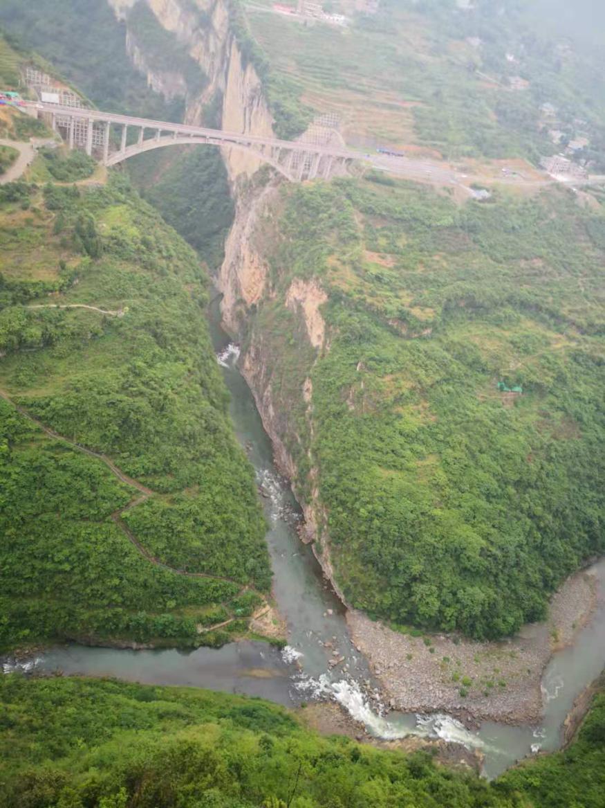 (图注:鸡鸣三省三条河流交汇处,桥梁左侧为云南辖区,右侧为四川辖区,拍摄者所在一侧为贵州辖区,交汇后的河流即是赤水河)