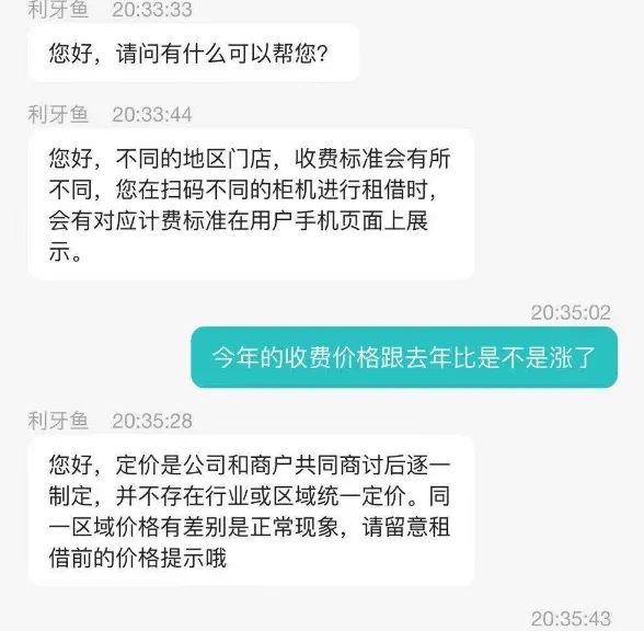 不过多位共享充电宝的客服均否认涨价,称充电宝在不同的场景,收费规则不一样。“小电共享充电宝”客服工作人员表示,该品牌的共享充电宝收费价格会根据投放所在的城市和场景有所不同,具体收费价格以消费者扫码时页面展示的为准。