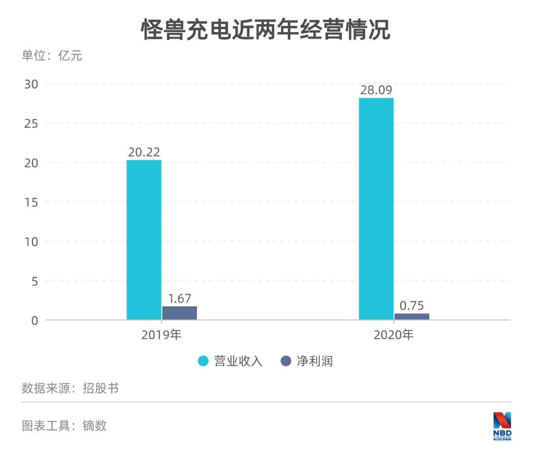 2019年、2020年,怪兽充电营业收入分别为20.22亿元、28.09亿元,净利润分别为1.67亿元和0.75亿元。去年相当于每天赚20万元。与2019年相比,去年怪兽充电虽然营业收入增速达到38.9%,但净利润却遭到腰斩,净利率更是由8.3%下降至2.7%。