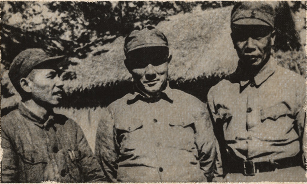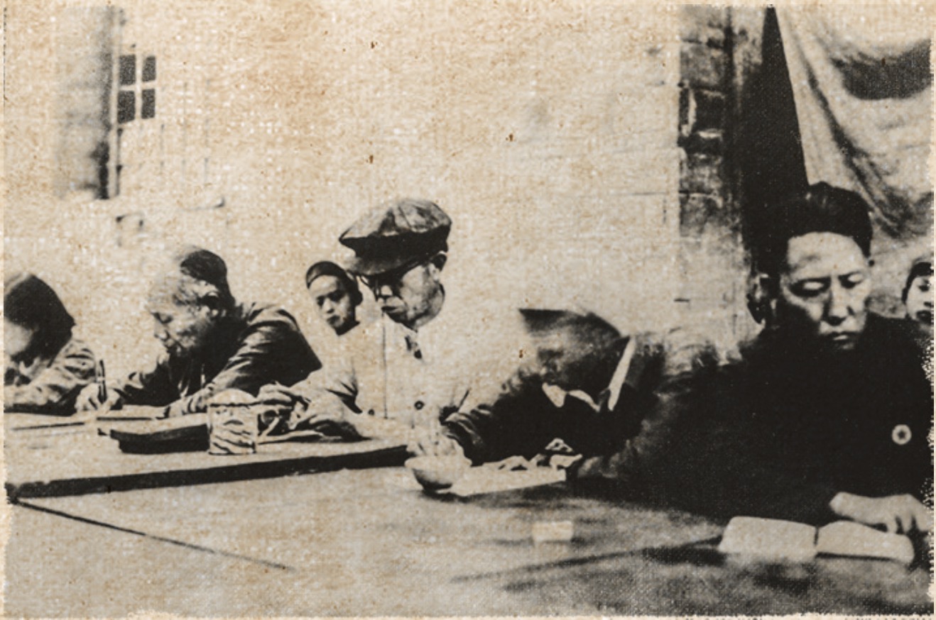 华东局工委负责人张鼎丞(左一)、邓子恢 (中)致电华北财经办事处,建议立即成立统一的银行