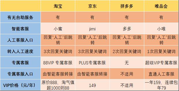 Z世代实验室对比了淘宝、京东、拼多多、唯品会四大电商平台服务发现,后台回复“人工”后均可跳转人工客服,细节方面亦有明显差异。具体来看,唯品会、拼多多的转跳步骤较少。大部分平台都针对会员提供了专属客服,其中,唯品会的超级VIP服务可以直通人工客服。