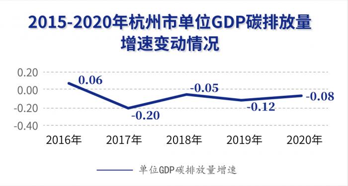从数据来看,近年来杭州单位GDP碳排放量不断下降,2020年约为0.57万吨/亿元,实现了经济增长和节能减碳两不误。
