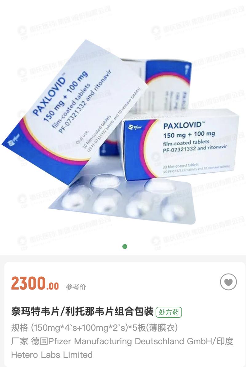 18日,有消费者发现新冠病毒治疗药物奈玛特韦片/利托那韦片组合包装(即Paxlovid)疑似在国内药房上架,小程序“和平新健康药房”显示,可提交愿望单,需要拍摄药品正面包装图或处方图,参考价为2300元。