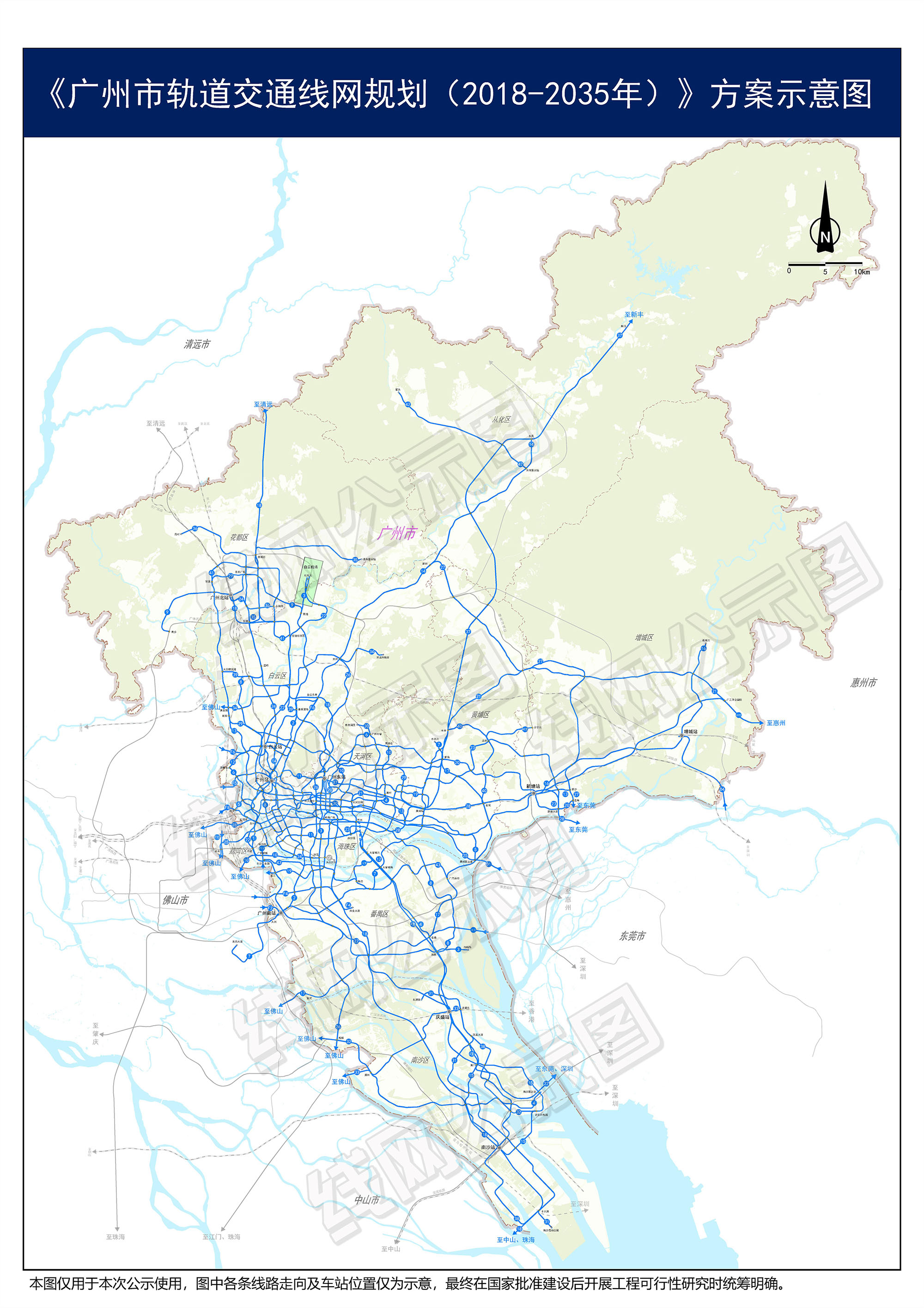 8月2日,广州市规划和自然资源局发布《广州市轨道交通线网规划(2018-2035年)》,共规划了53条、2029公里的地铁线路。此次规划实施后,不仅广州市内线网加密,整个大湾区的地铁也将联网。
