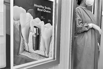 摄一家牙科医疗机构种植牙宣传图。记者 潘悦 摄