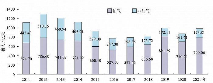 2011-2021年中国地质勘查投资变化趋势 图片来源:自然资源部