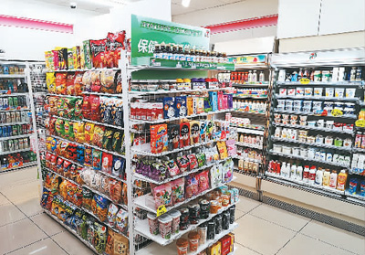 北京市朝阳区一家“7-11”便利店里,货架上的商品琳琅满目。