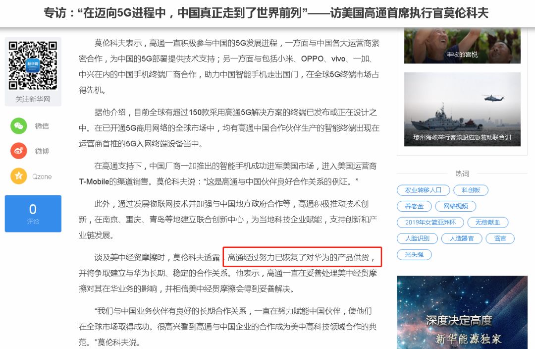 在上述专访中,谈及美中经贸摩擦时,莫伦科夫透露,高通经过努力已恢复了对华为的产品供货,并将争取建立与华为长期、稳定的合作关系。他表示,高通一直在妥善处理美中经贸摩擦对其在华业务的影响,并相信美中经贸摩擦会得到妥善解决。