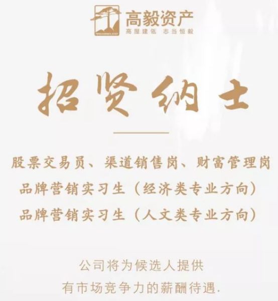 高毅资产前不久也发出了招聘计划,岗位包括股票交易员、渠道销售岗、财富管理岗和品牌营销实习生,工作地点在北京、上海、深圳都有。