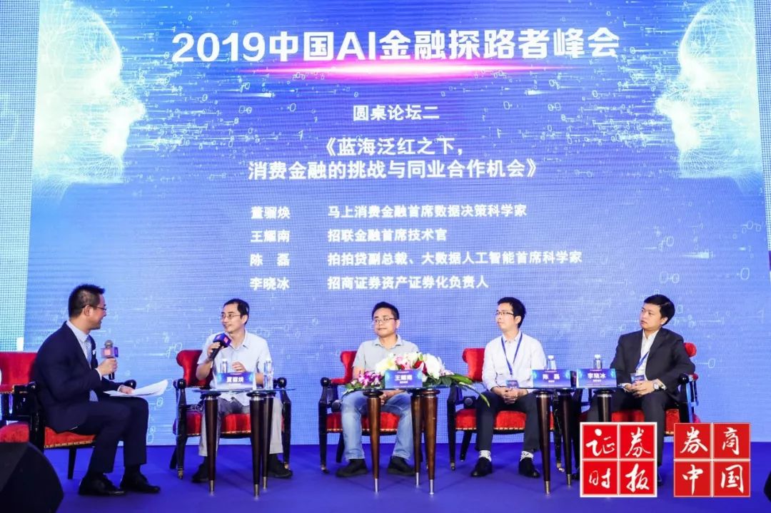 在第二个圆桌论坛环节,四位嘉宾进行了积极探讨。嘉宾分别为:马上金融首席数据决策科学家董骝焕、招联金融首席技术官王耀南、拍拍贷副总裁、大数据人工智能首席科学家陈磊、招商证券资产证券化负责人李晓冰。