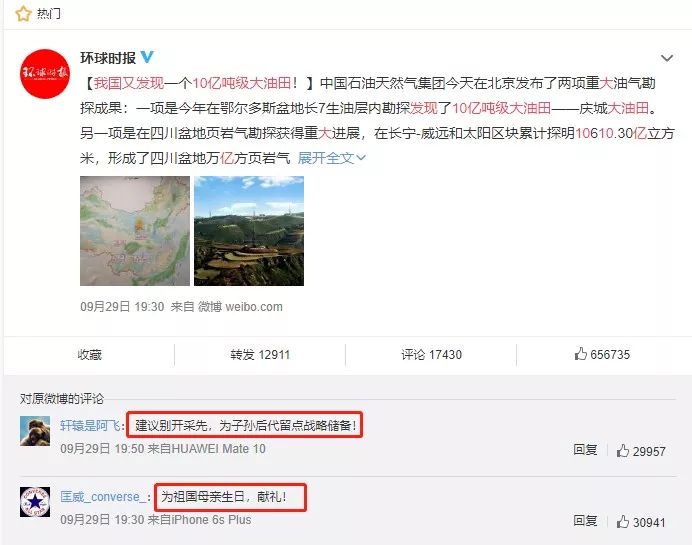 对于10亿吨级大油田的发现,在新中国成立70周年之际,为祖国献礼。同时,网友也纷纷表示,要省着点用,可以做为战略储备。
