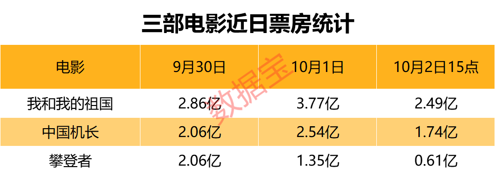 9月30日,三大主旋律电影《我和我的祖国》《中国机长》《攀登者》同步上映,3部重点献礼影片全线飘红。