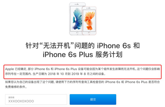 北京时间10月5日,苹果公司表示,由于零件故障,在2018年10月至2019年8月之间生产的部分iPhone 6s和iPhone 6s Plus可能无法开机。苹果公司表示可为受影响的用户提供免费的维修计划。
