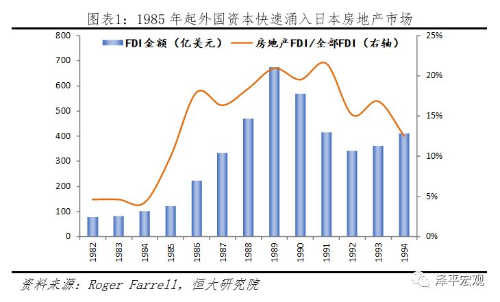 以1985年为界,金融开放使得海外资本迅速涌入日本市场,金融资产及房地产泡沫快速堆积,同时日本海外并购潮涌,大肆收购海外地产。伴随1985年日本金融自由化的措施逐步落地,日本FDI迅速攀升,1986年日本FDI投资共3196件,金额达223亿美元,较1985年上升82.7%,其中FDI流入房地产市场比重提高,占比达17.9%,较1985年提高8个百分点。日本房地产价格自1986年起迅速攀升,房地产泡沫迅速堆积,并最终于1991年破灭。日本股市同样如此,在外资疯狂涌入后,股票价格节节攀升,但伴随日本银行连续加息及外资的撤退,1989年末股市泡沫迅速破裂,日本从此陷入“失落的二十年”。