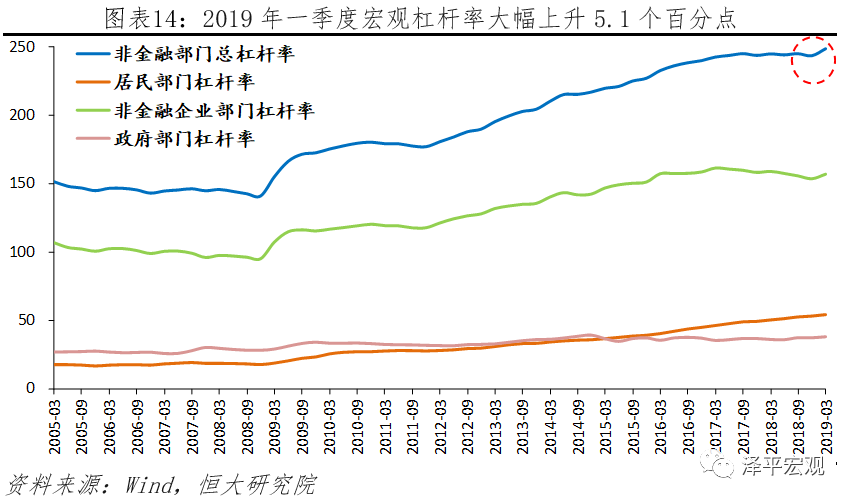 第一,目前中国宏观杠杆率偏高,逐步开始干扰经济正常运行,加大宏观政策调控难度。2019年一季度中国非金融部门总杠杆率为248.8%,较2018年底上升5.1个百分点,上升幅度较大,宏观杠杆率过高的负面影响显著,一是干扰经济正常运行,经济复苏疲弱;二是增加宏观调控难度,削弱政策效果。此外,中国居民部门杠杆偏高,在2008年国际金融危机后居民部门经历了三轮快速加杠杆,杠杆水平从新兴市场经济体向发达经济体迅速靠拢,安全空间被快速消耗。居民杠杆的过快上升将带来银行资产恶化、金融风险积聚以及抑制居民消费增长等不良影响。第二,虽然政府债务率在国际偏低,但中国地方政府隐形债务高企。根据财政部披露数据,截至2018年末全国地方政府性债务存量规模为18.39万亿,债务率为39%,低于同期的美国和日本。但据估计,我国地方政府隐形债务大约在30-50万亿左右。第三,中国金融业和房地产业占GDP比重高,金融脆弱性强。2018年底,金融业占GDP比重7.7%,房地产业占GDP比重6.6%,两者之和接近日本80年代末的水平,巨大的债务以房地产作为抵押,一旦出现供需错配或价格的大幅波动,极有可能引发信用危机,进而发展成为系统性风险,增加金融体系脆弱性。