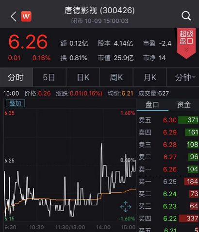在宣布重拍《巴清传》之后,今日,唐德影视的股价微涨0.16%。