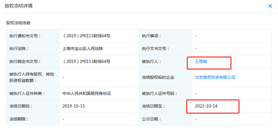 企查查显示,日前北京普思投资有限公司(以下简称“普思资本”)股权遭到法院冻结,冻结期限自2019年10月15日至2022年10月14日,具体冻结数额不详,执行法院为上海市宝山区人民法院。