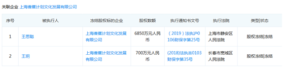 同时,王思聪的上海香蕉计划文化发展有限公司被冻结6850万元人民币股权,香蕉计划电子游戏有限公司被冻结140.7万元人民币股权。