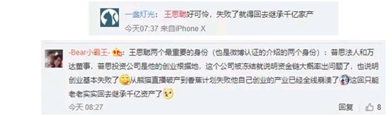不少网友很关心,王思聪是不是要回去继承千亿财产了。