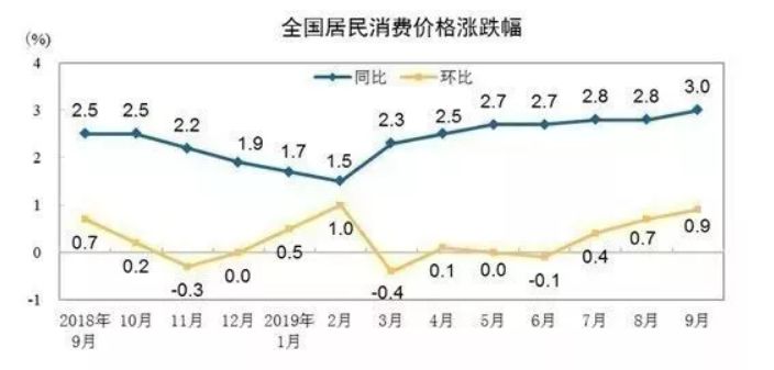 10月15日,国家统计局发布数据显示,9月份全国居民消费价格(CPI)同比上涨3%,涨幅比上个月扩大0.2%个百分点,创下近6年来涨幅新高。