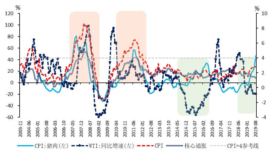 通俗的说,猪价高的时候,油价低,油价高的时候,猪价低。但是一旦两个价格发生共振,就会很容易带来整体物价的上行风险。